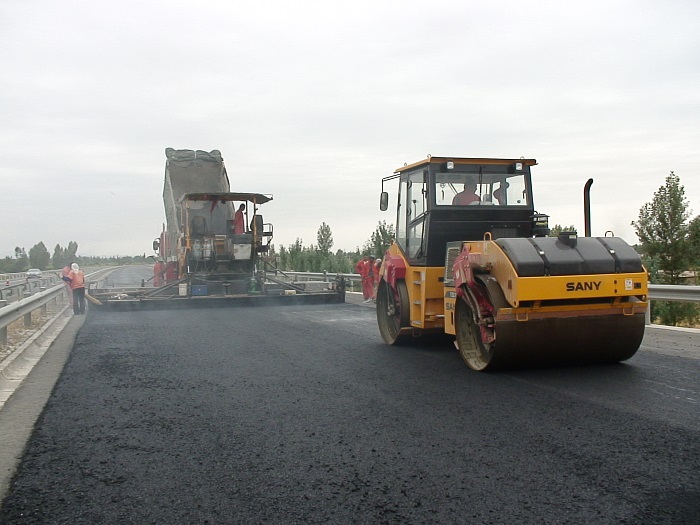 G30线 桥头跳车处治现场(摊铺)